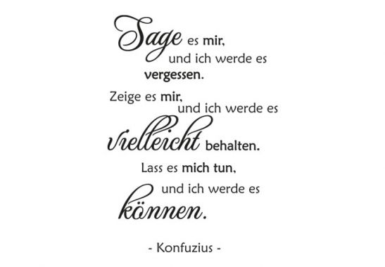 Was du mir sagst, das vergesse ich. Was du mir zeigst, daran erinnere ich mich. Was du mich tun lässt, das verstehe ich.