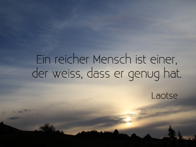 Es gibt keinen größeren Köder als Verlangen, keinen größeren Fluch als Unzufriedenheit, kein größeres Mißgeschick als Habgier. Wer weiß, daß genug genug ist, wird immer genug haben.
